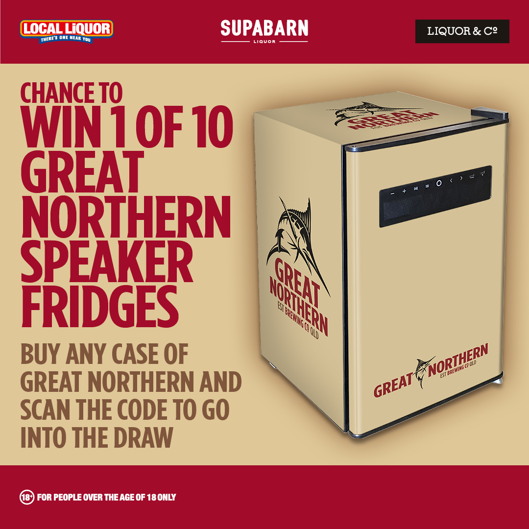 Buy any case of Great Northern, scan the QR code and upload your receipt to go in the draw to win 1 of 10 Great Northern Speaker Fridges valued at $600.